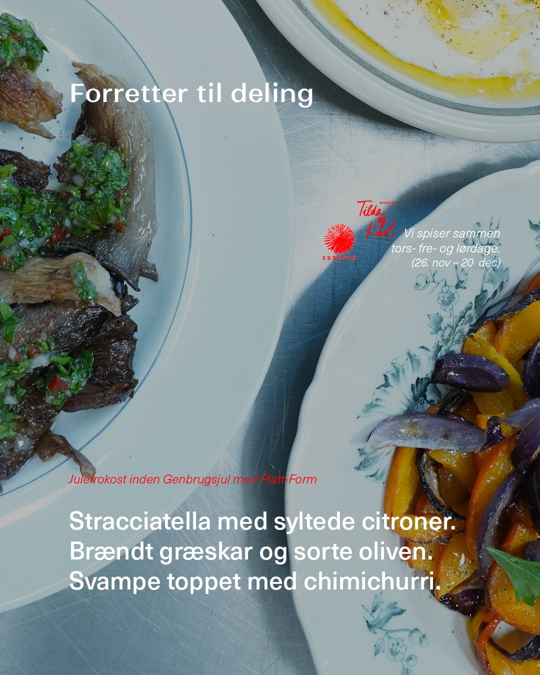 Julefrokosten kan kun købes som et tilkøb til Genbrugsjul med Platt-Form og gælder kun til torsdage, fredage og lørdage i spilleperioden 26. november – 20. december 2025 →